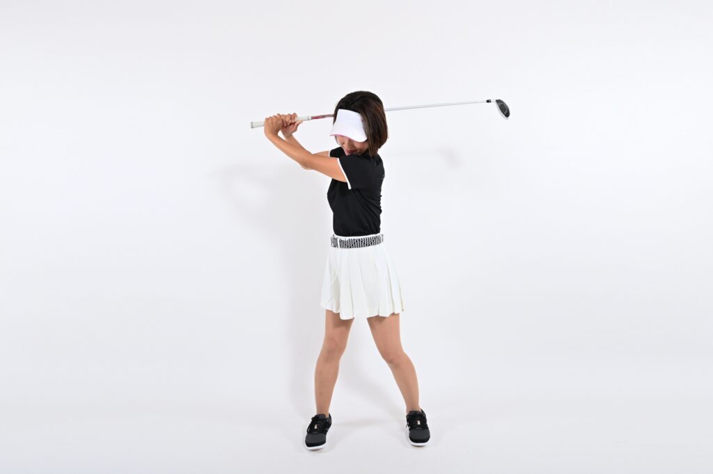 まだインサイドアウト軌道が残っていたため、左へ振る意識(アウトサイドインのイメージ)でスイングしました。これにより、徐々に低いストレート系のショットが打てるようになりました。